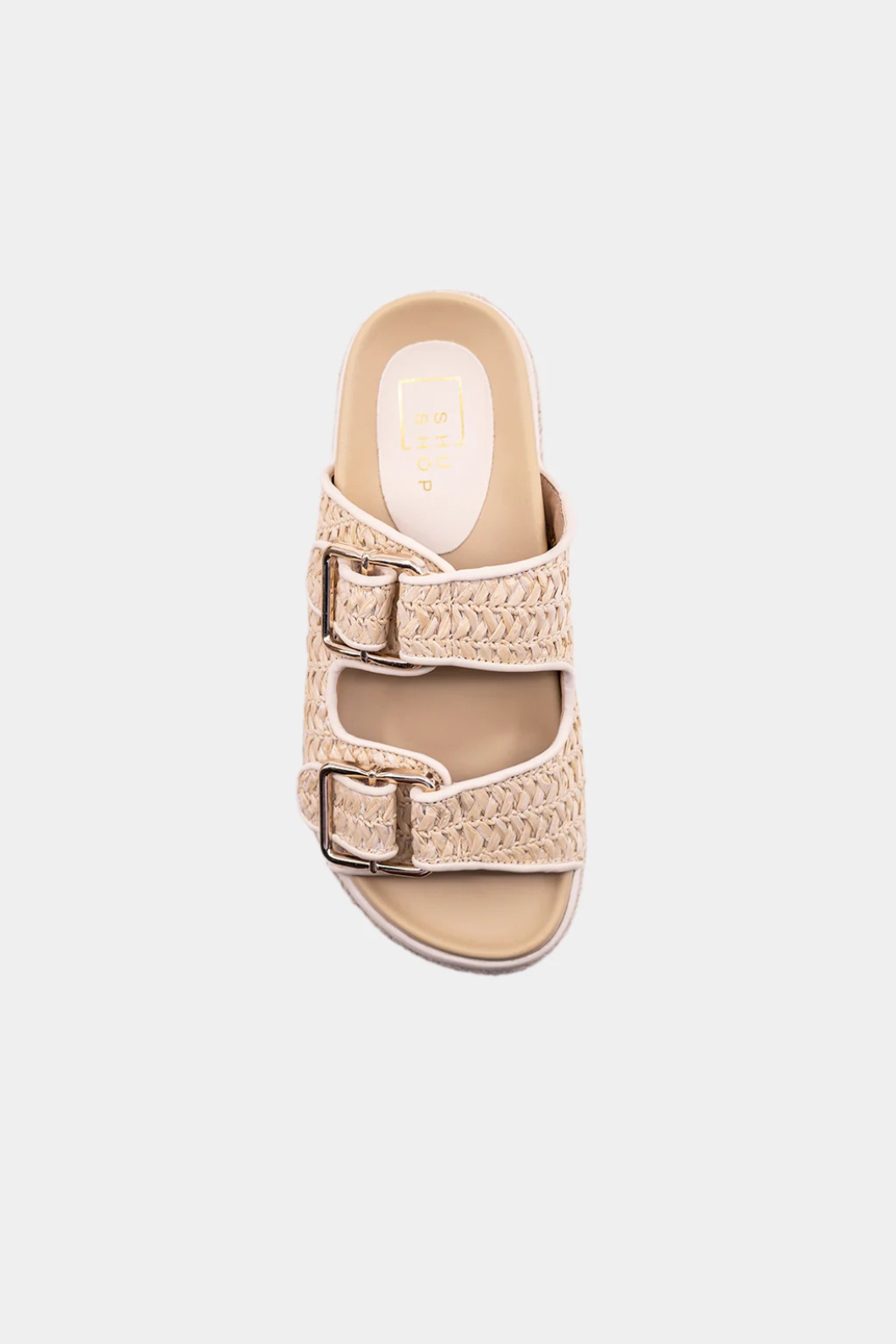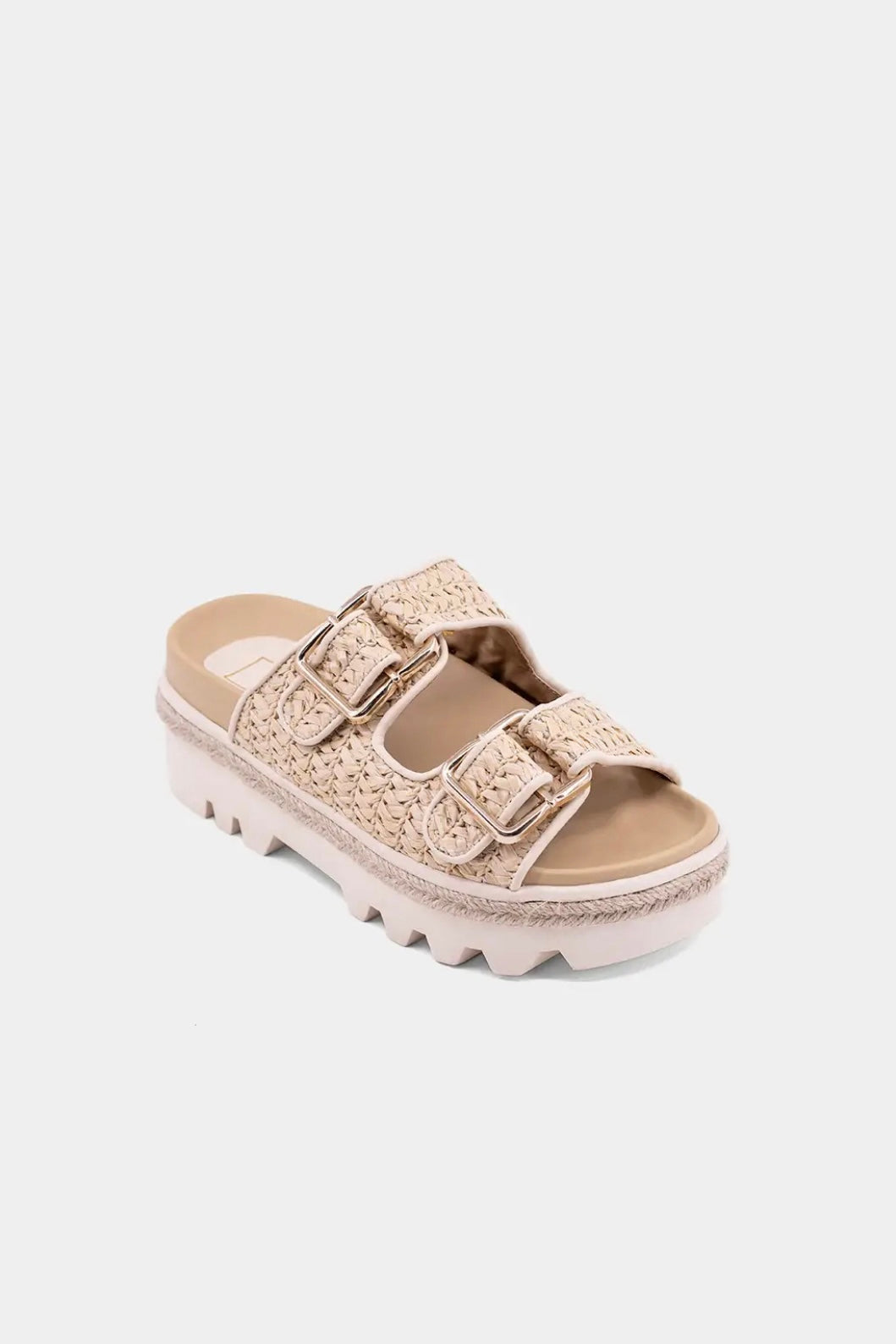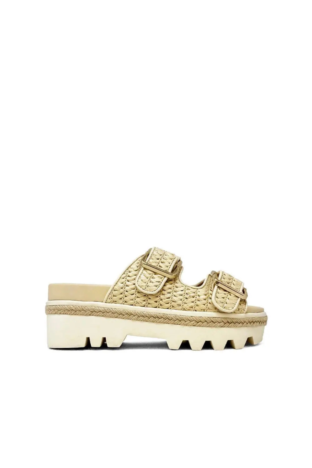 Step into effortless style with XYLA, the ultimate flatform sandal that blends texture and comfort. The woven natural upper paired with gold-tone pin-buckle straps adds a laid-back yet polished vibe. Designed with a lightweight elastic outsole, molded footbed, and rope-trimmed sole, it delivers all-day ease with a fashion-forward edge. Perfect for warm-weather adventures and everyday chic!