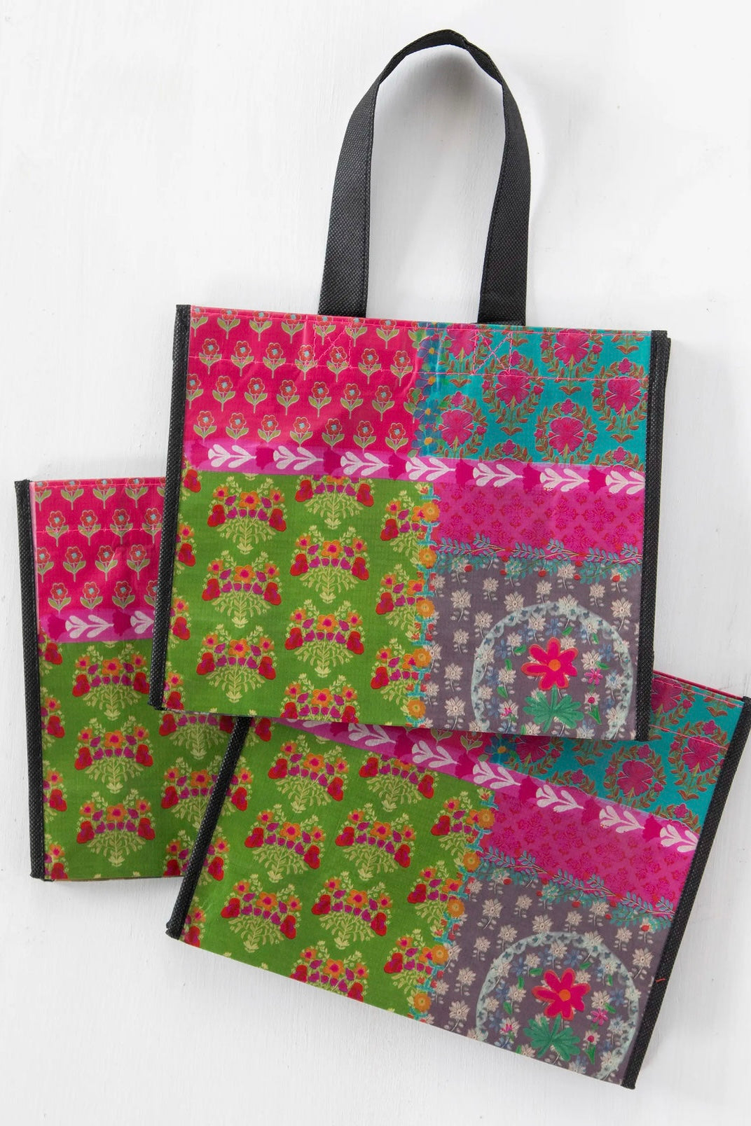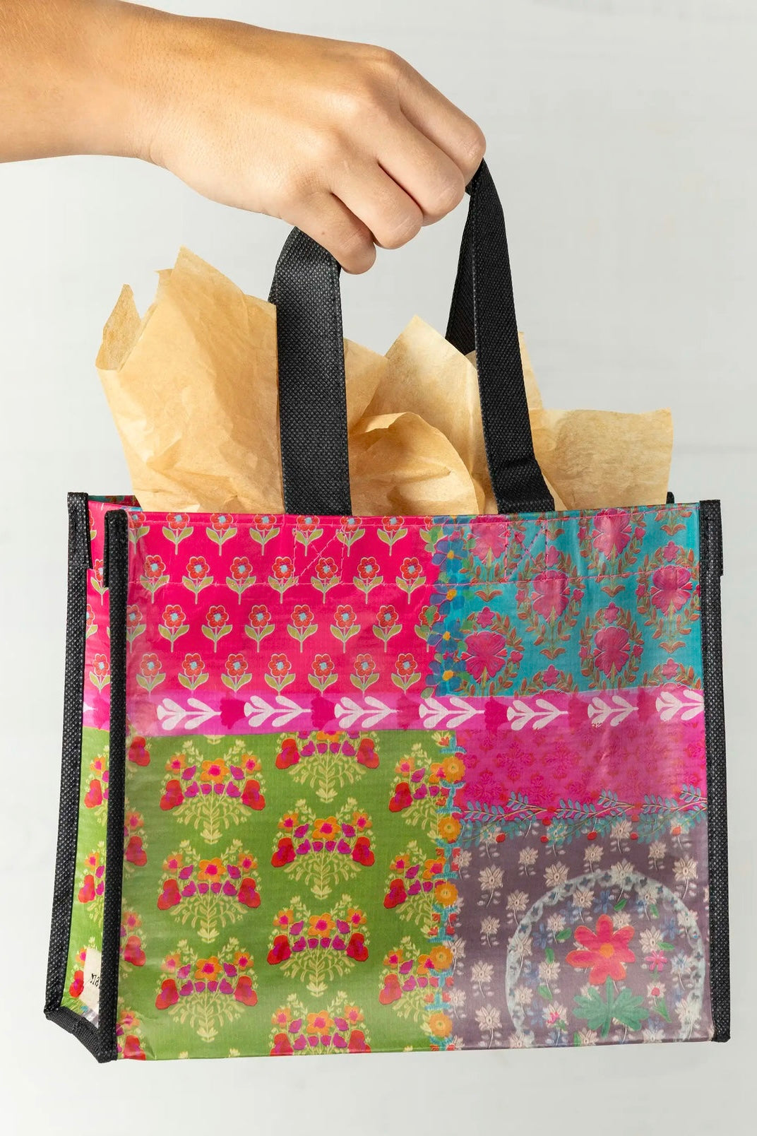 - Reusable bag features nylon webbed handles