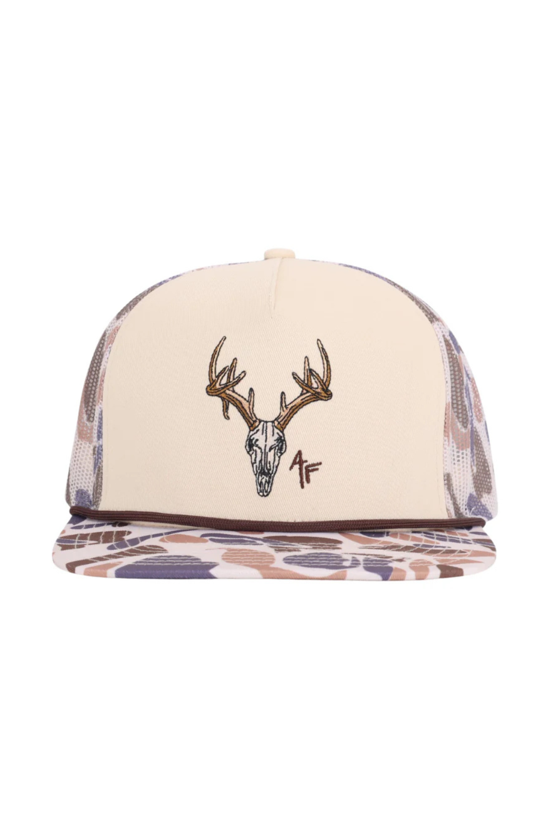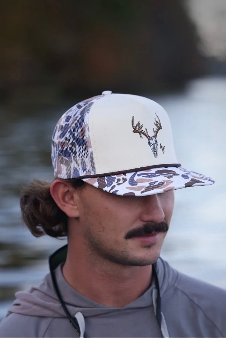 Our European Skull Camo Hat is a custom 5-panel snapback from American Fetcher, a brand known for its detailed designs and love for the outdoors. This trucker hat is a unisex piece with a unique camo pattern. With its adjustable snapback, it ensures a comfortable fit for all.