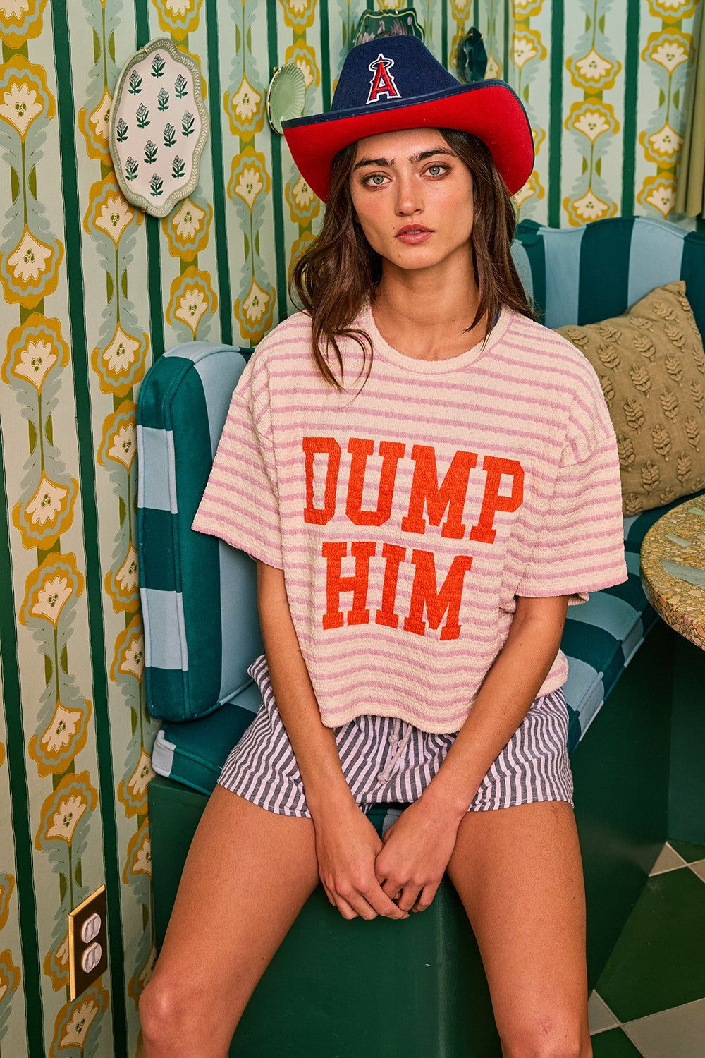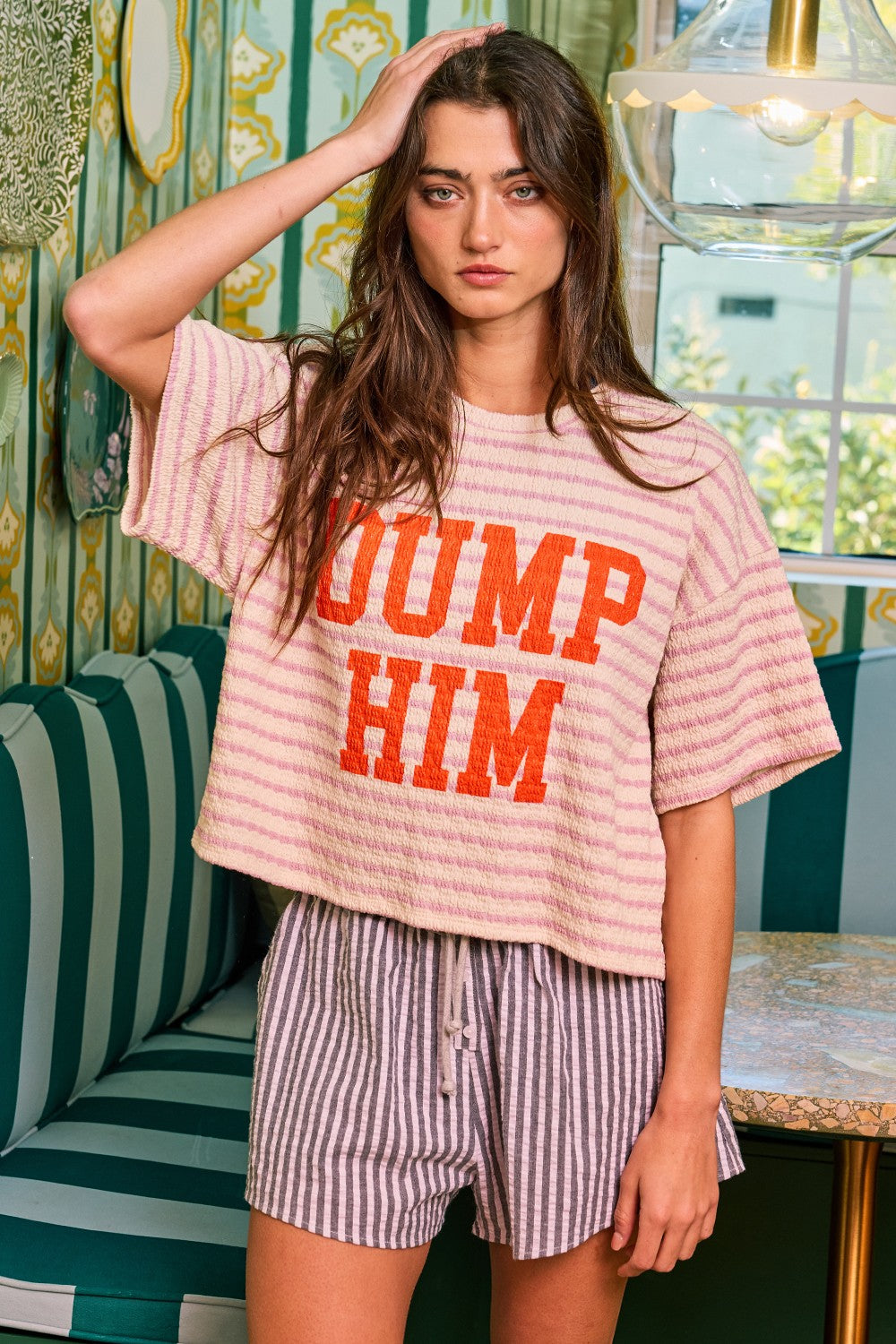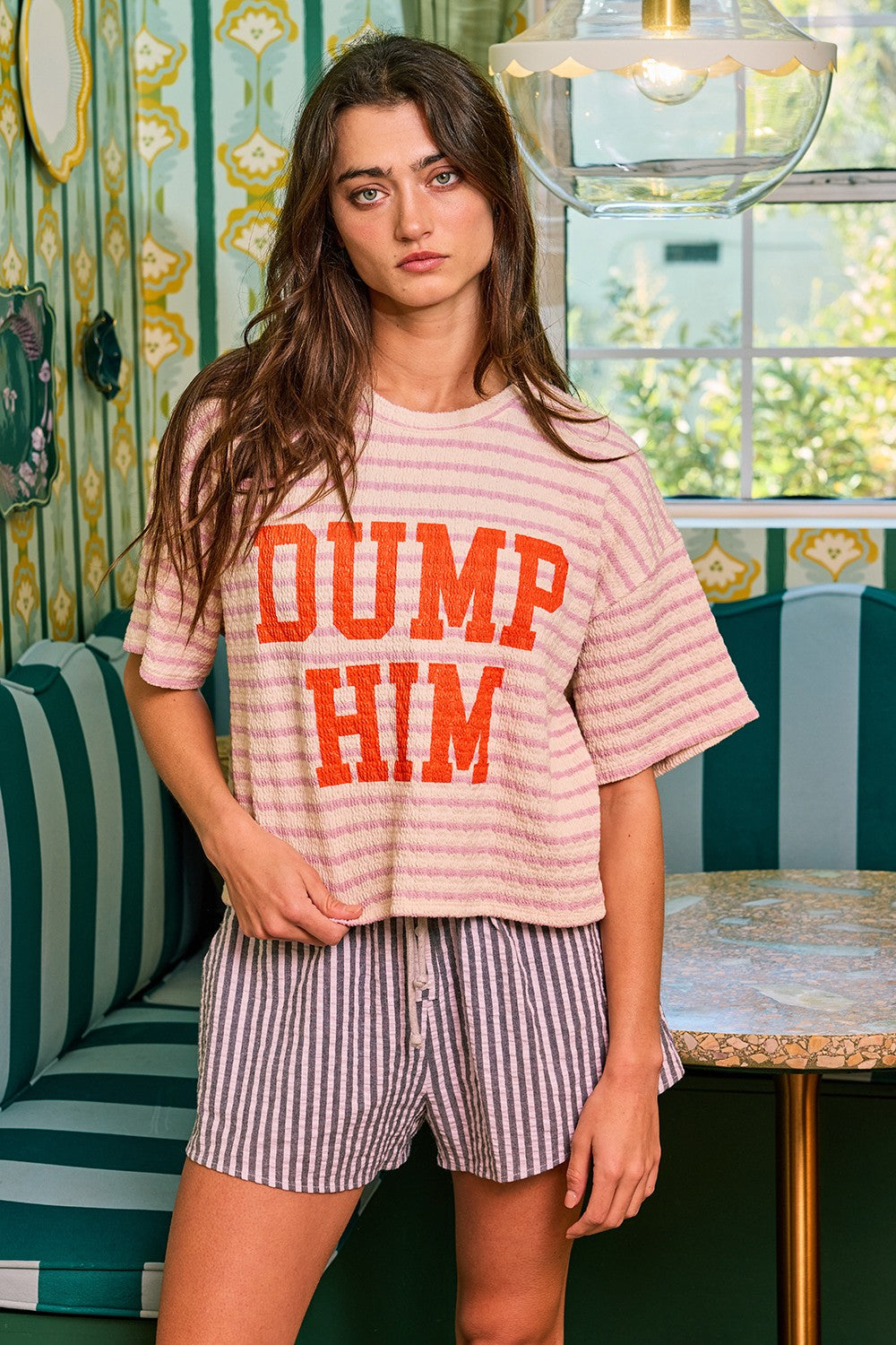 The Dump Him Striped Top by Bucketlist brings the perfect mix of sass and comfort. Designed in a creamy base with soft light-purple stripes, this top makes a statement with bold orange āDUMP HIMā letteringābecause sometimes fashion says what weāre all thinking.
