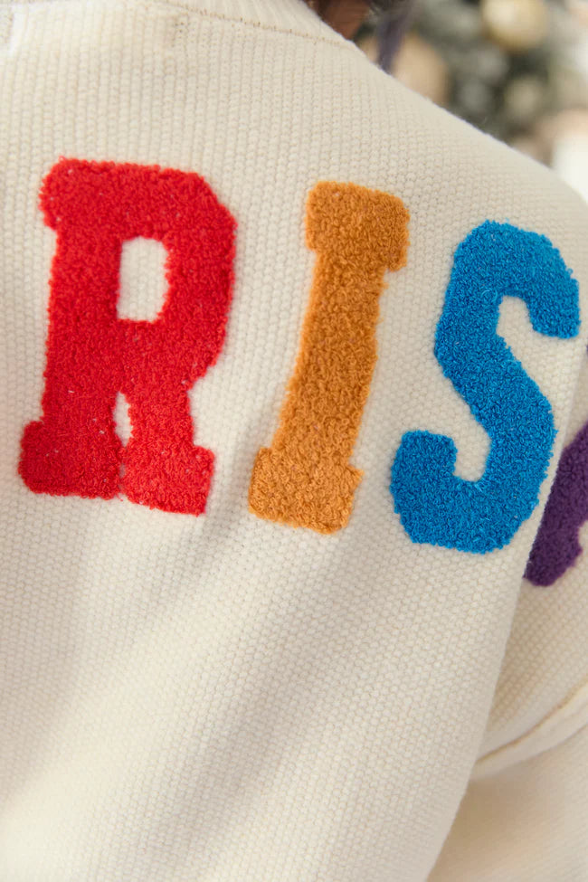 Bring on the holiday cheer in the coziest way! Our Holly Jolly Sweater by JOA is all about festive fun and high-quality comfort. With colorful “MERRY CHRISTMAS” lettering across the back and a tiny Christmas tree detail on the front, this knit will have you feeling merry from every angle.