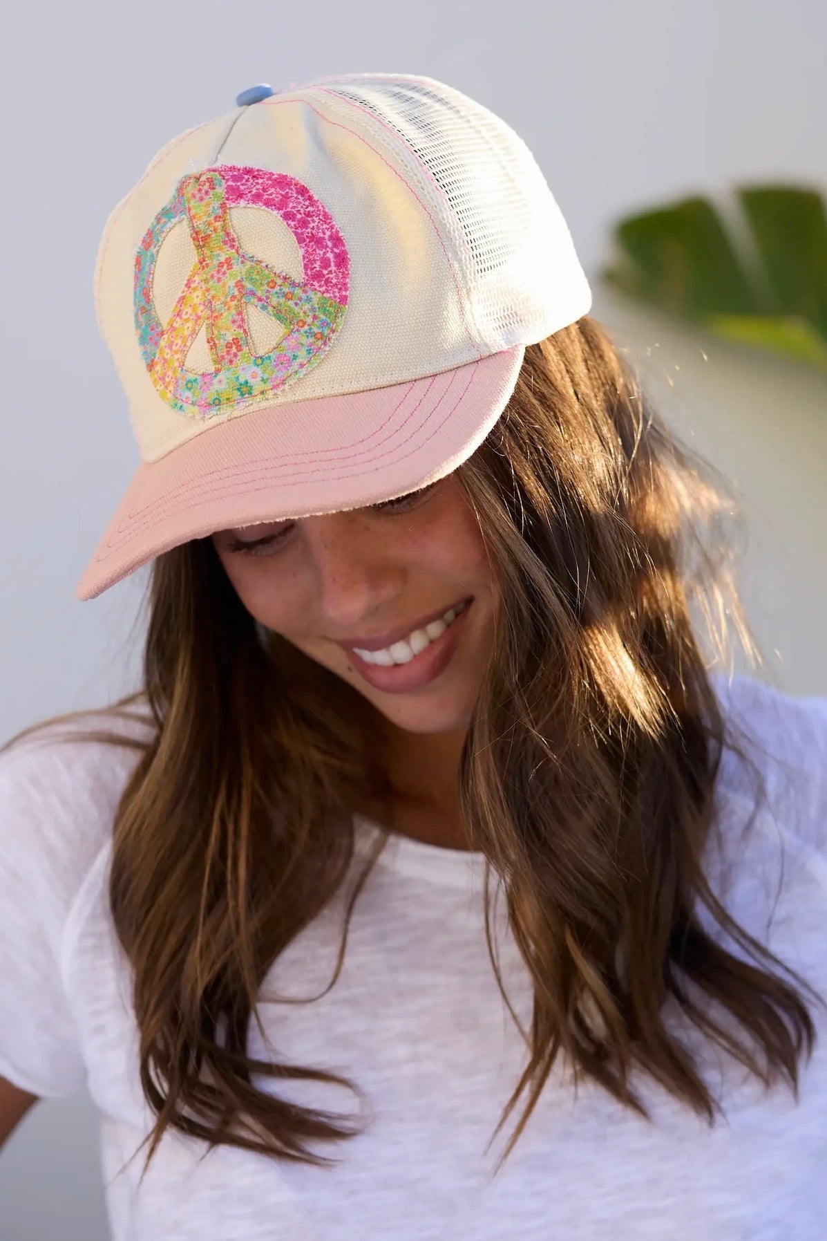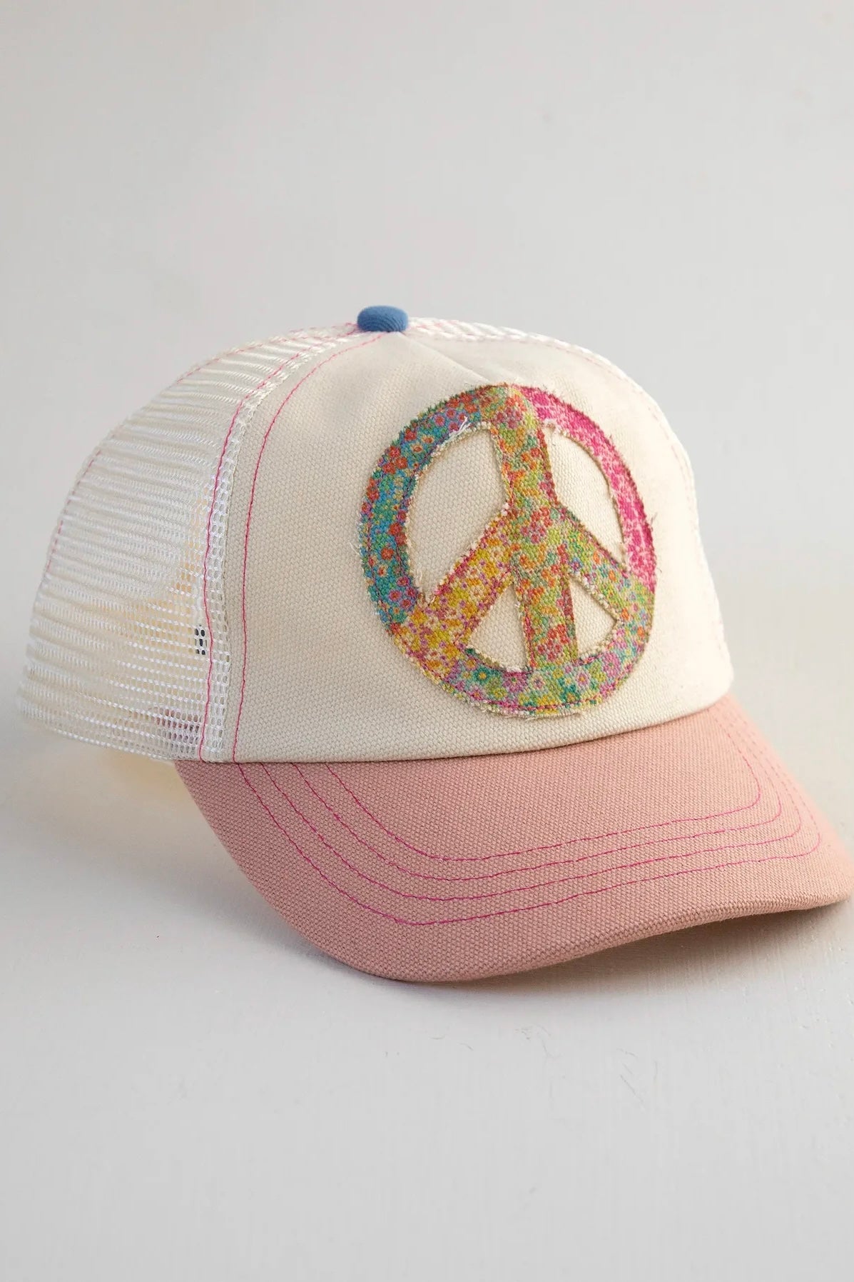 Our Canvas Trucker Hat is the perfect hat for on-the-go! It’s the cutest, easy accessory for any outfit! It features a canvas front with a sewn-on Peace sign , breathable mesh, neutral bill, and a snapback closure so one size fits most! Wear it while running errands, at a ballgame or the beach, anywhere!