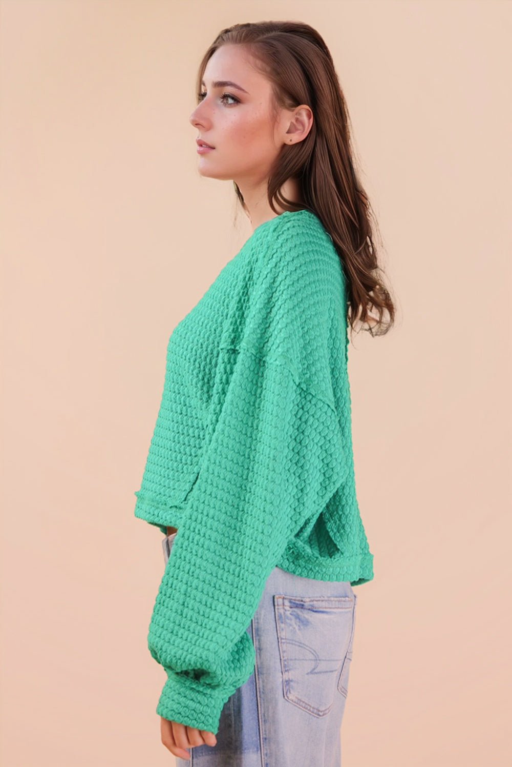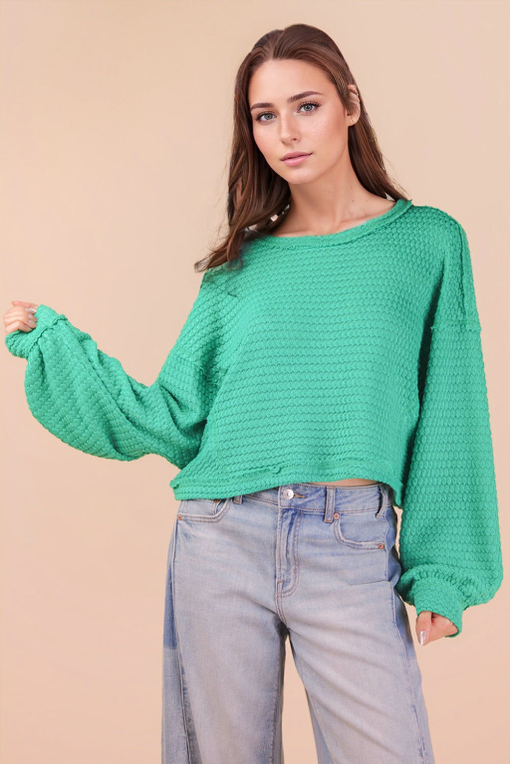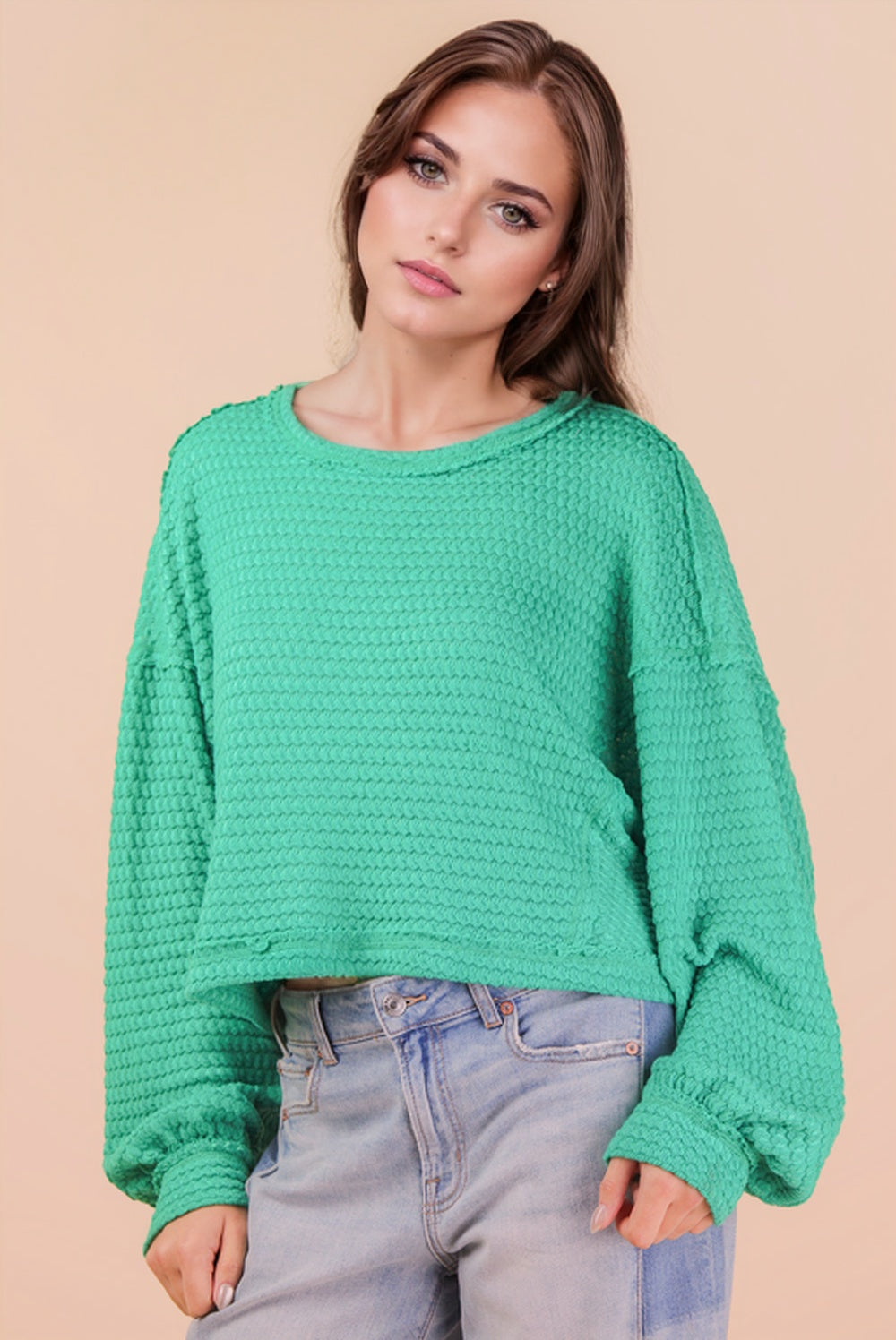 Cozy meets cute in our Hallie Waffle Knit Top. Designed with a soft waffle texture and an easy, relaxed fit, this top is made for everyday comfort with a touch of style. Featuring a cropped length and subtle balloon sleeves, Hallie is effortless, flattering, and perfect for layering or wearing on its own.