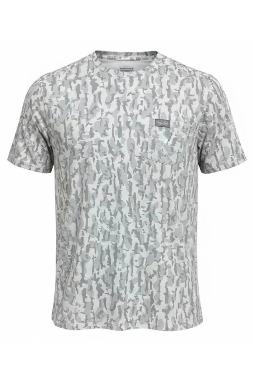 Built for comfort whether you’re on the water, in the field, or kicking back after a long day. Our Honey Hole Men’s Shirt in White Camo is soft, breathable, and lightweight—designed to keep you cool without that clingy feel of traditional synthetic tees. The poly–rayon blend gives it a smooth, broken-in feel with just the right amount of stretch, while the subtle camo print keeps the look laid-back and versatile. Finished with a classic crew neckline and chest pocket for everyday wear.